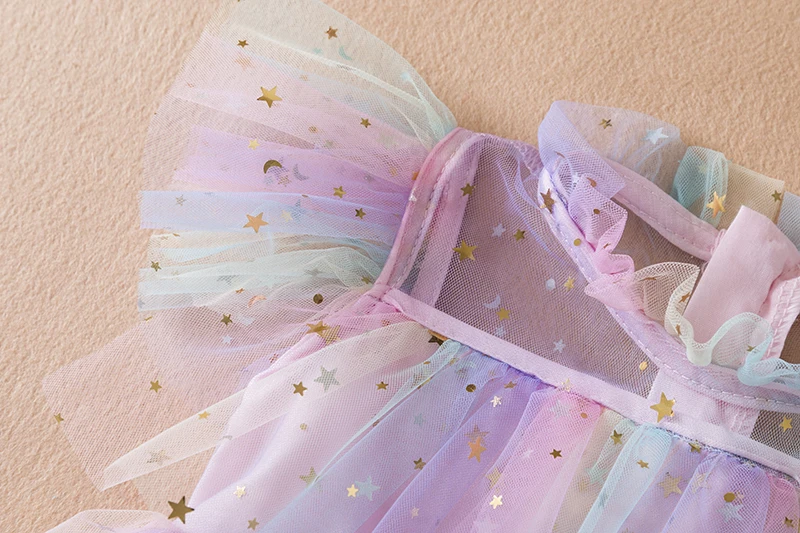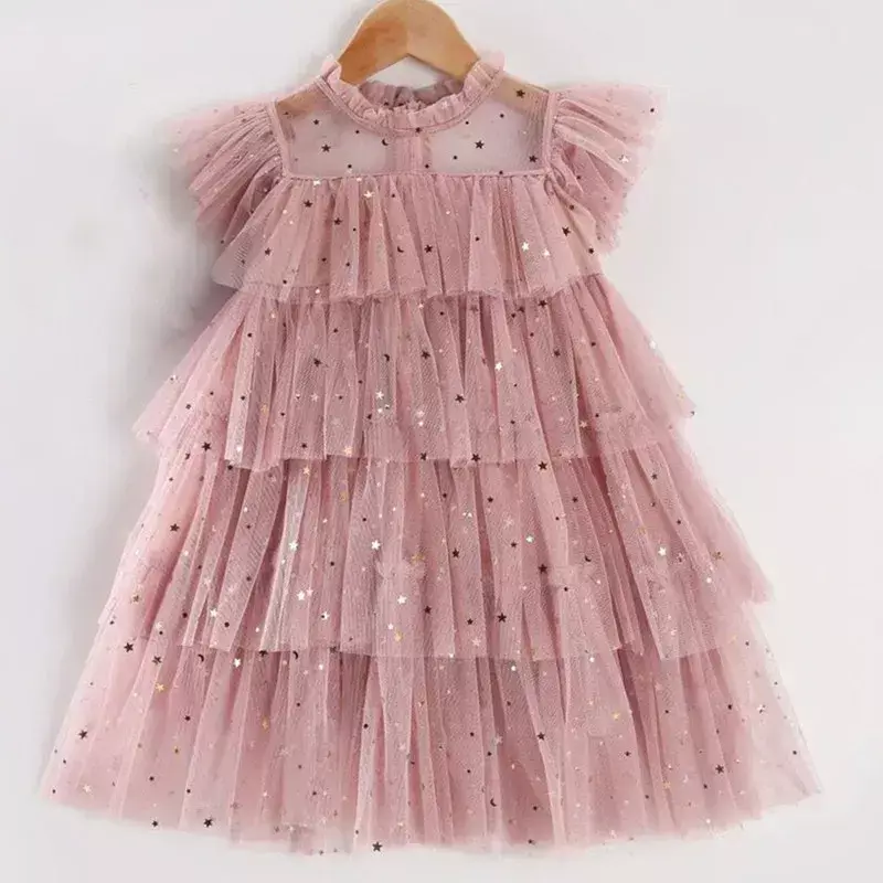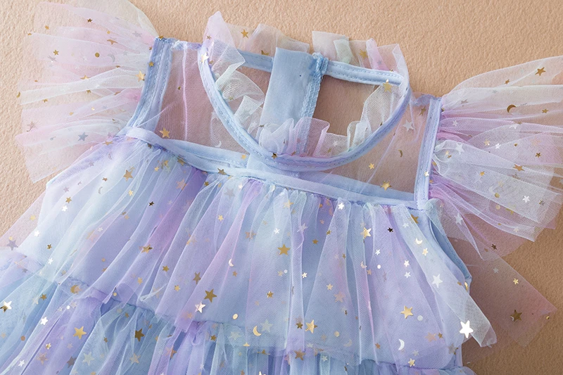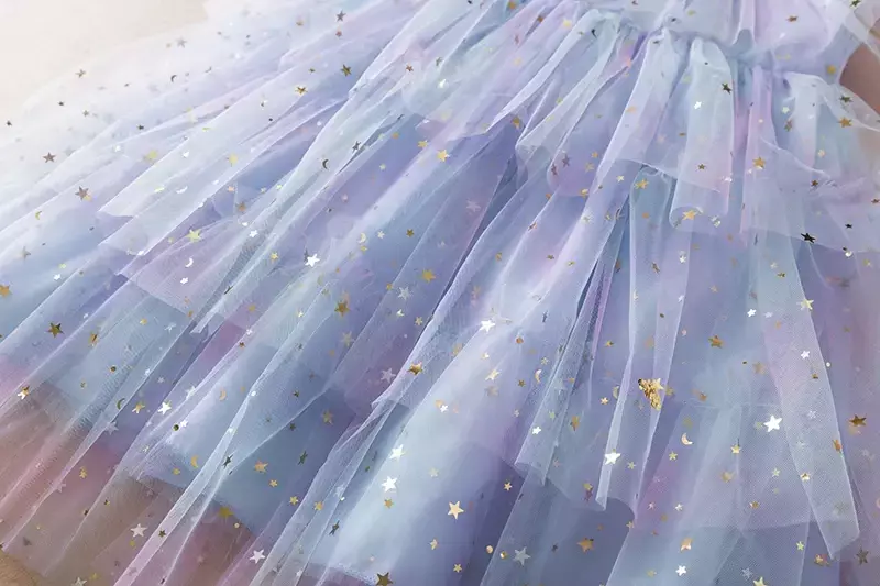 Feito com camadas delicadas de tule, acabamento com lantejoulas brilhantes e detalhes encantadores na gola e nas mangas, esse modelo é puro encanto e elegância.